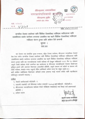 आन्तरिक रोजगार प्रवर्धनका लागि बैदेशिक रोजगारबाट फर्किएका व्यक्तिहरुका लागि उद्यमशिलता प्रवर्धन कार्यक्रम अन्तरगत उद्यमशिल बन्न चाहने बैदेशिक रोजगारीबाट फर्किएका व्यक्तिहरु संलग्न हुनका लागि आवेदन दिने सम्बन्धि सूचना
