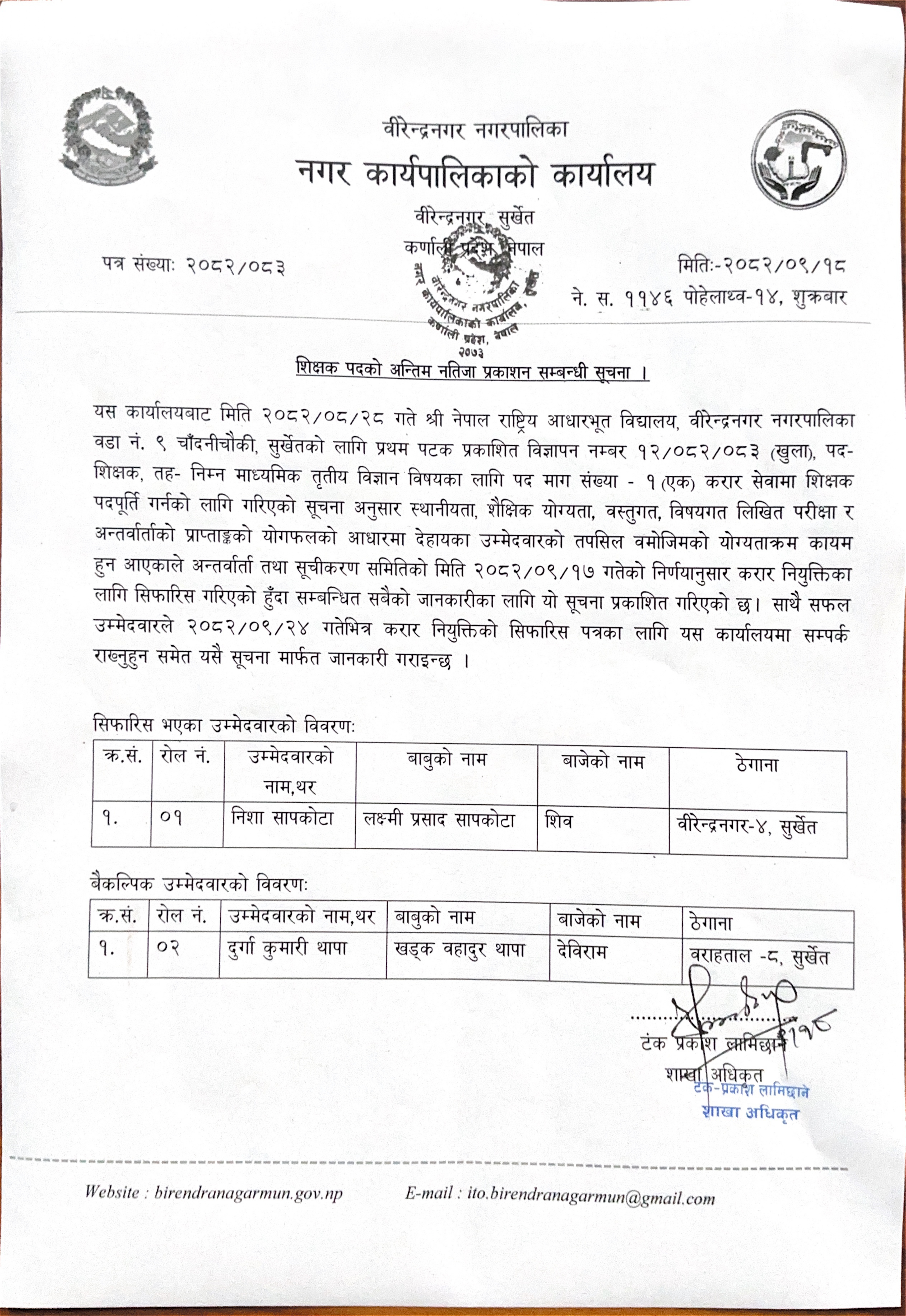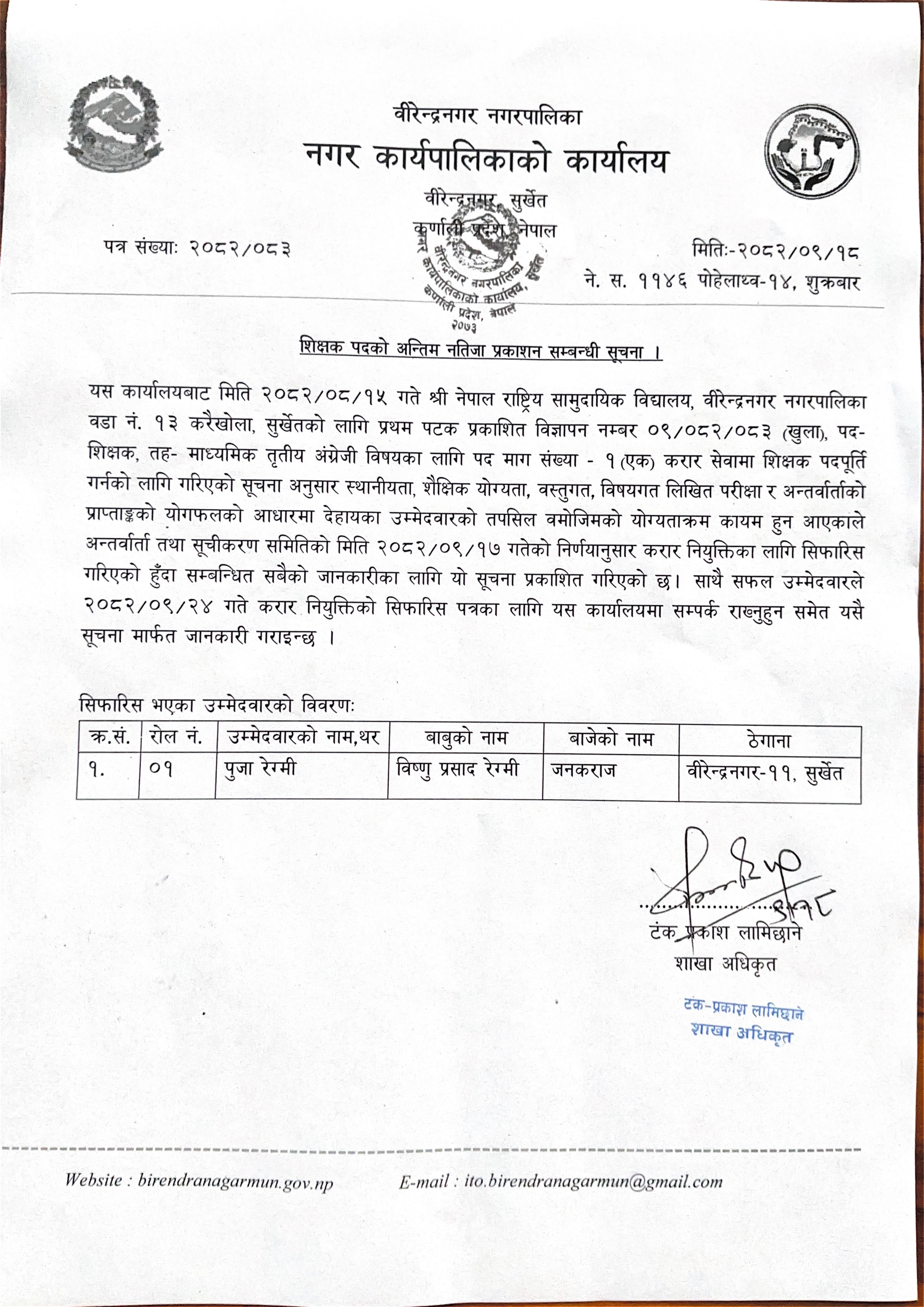 इन्जिनियर तथा शिक्षकको अन्तिम नितिजा प्रकाशन सम्बन्धि सूचना