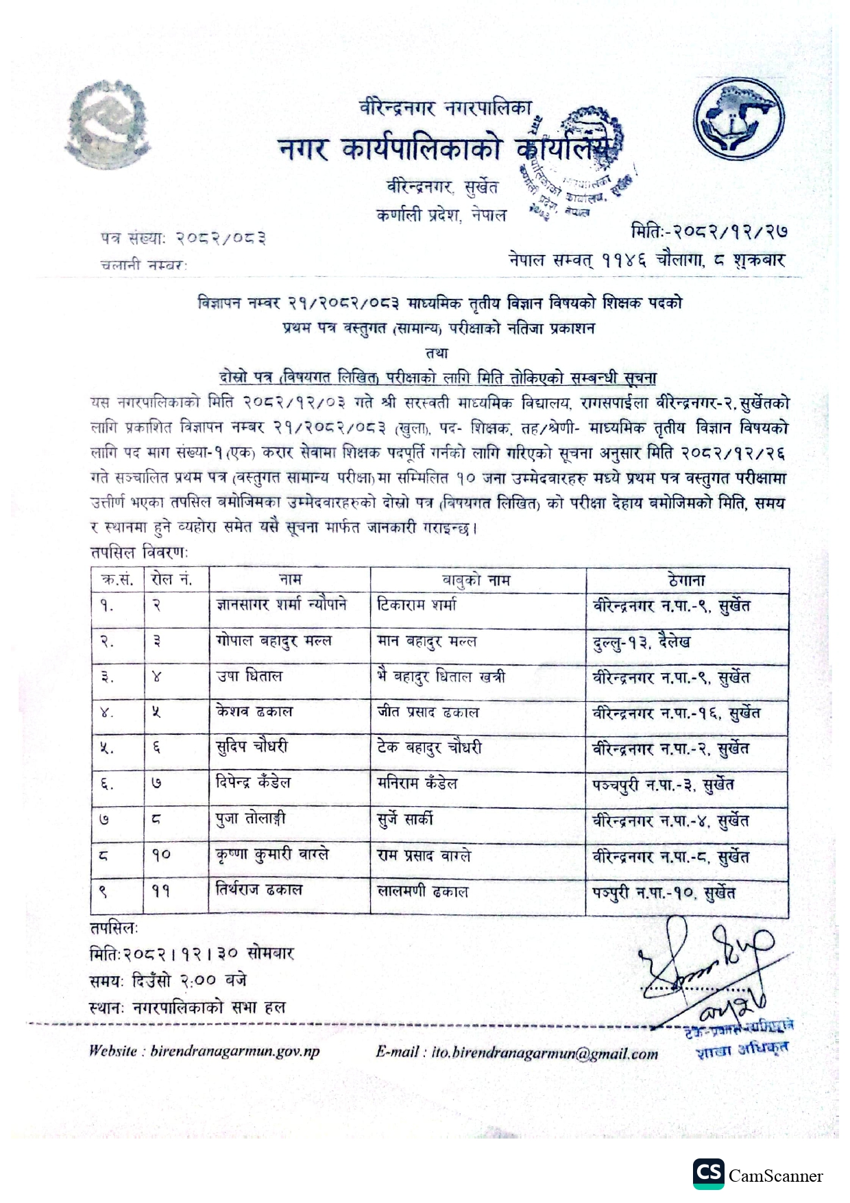 दोस्रो पत्रको परीक्षा सम्बन्धी सूचना
