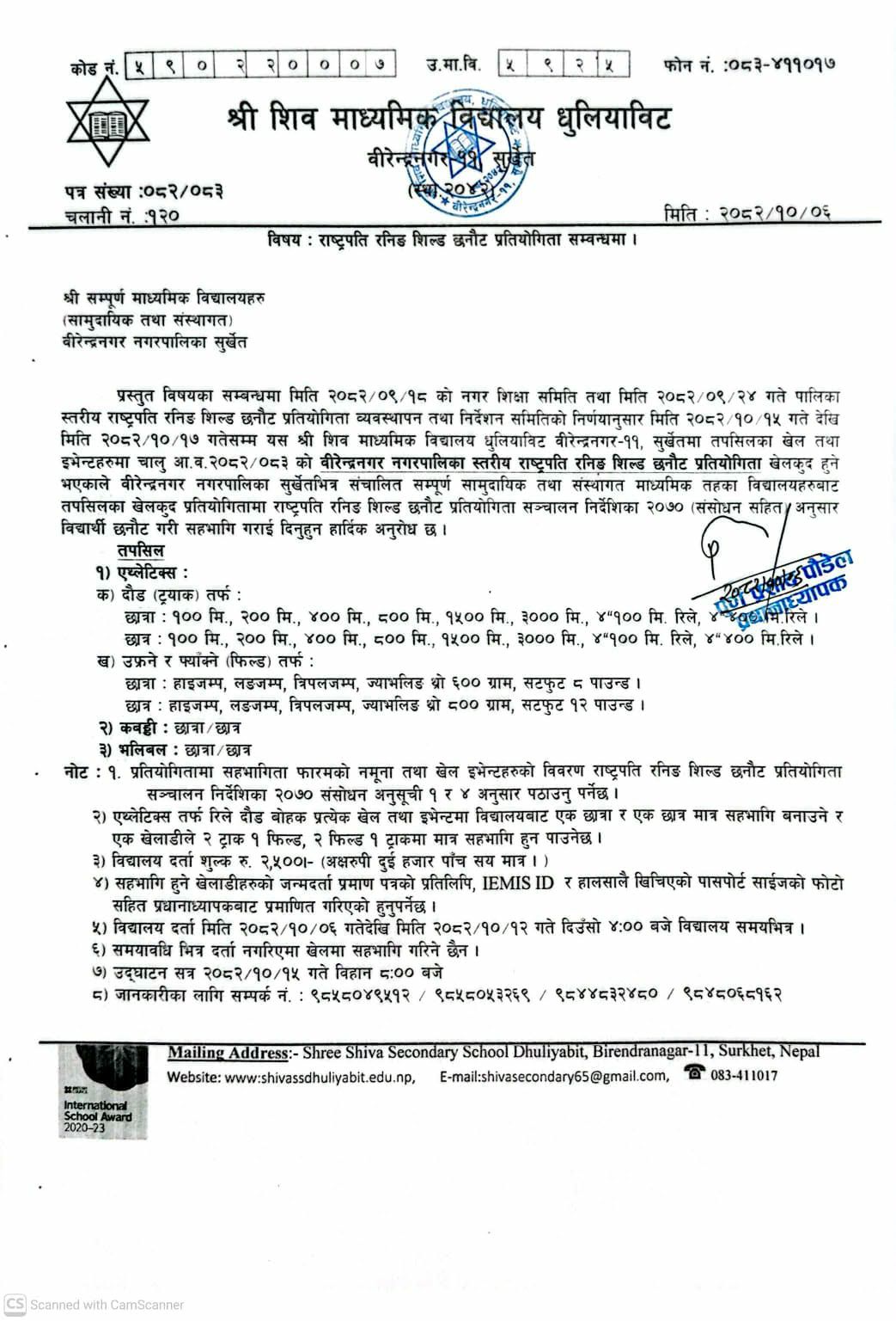 राष्ट्रपति रनिङ शिल्ड छनौट प्रतियोगिता सम्बन्धमा