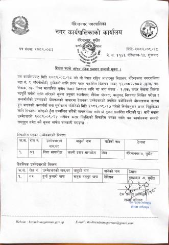 इन्जिनियर तथा शिक्षकको अन्तिम नितिजा प्रकाशन सम्बन्धि सूचना